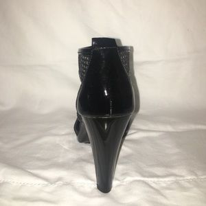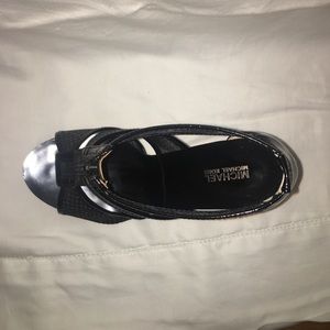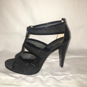The heels were only worn once and are in great condition. All black Michael Kors heels with a subtle sparking finish and a zipper up the middle.