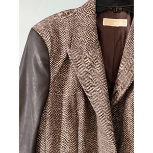 Michael Kors herringbone tweed jacket with faux leather sleeves, blazer