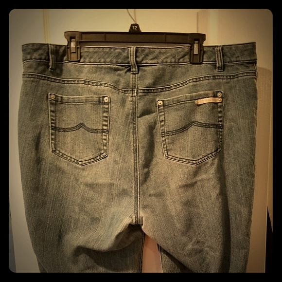 Used pair of Michael Kors jeans, in a light-medium denim color. No holes, but some wear on the inner thigh.