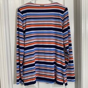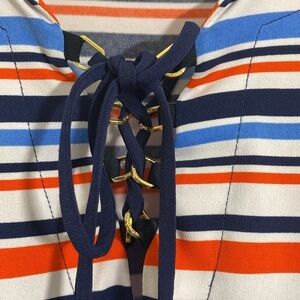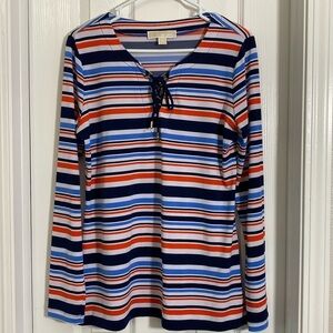 Michael Kors lace up nautical blue and orange striped blouse size medium