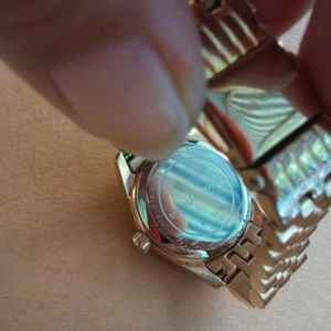 Good working condition I took it to a jewelry store here in town they opened it and told me it's AUTHENTIC. I have no box or no extra links. Its small