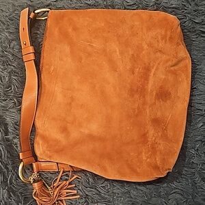 Michael Kors large satchel bag,burnt orange or peach color suede material.