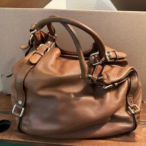 Michael Kors large satchel/tote in warm cognac/tan color.
