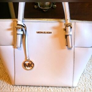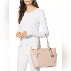 Michael Kors leather Jet set east west top zip tote shoulder bag. 16 w 10 h 4.5 d. Excellent condition. Comes with book of authenticity.