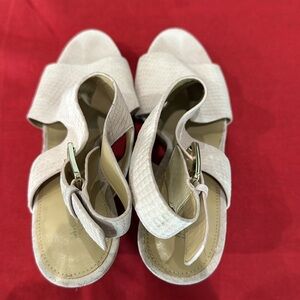 Elevate your style with these Michael Kors wedges, featuring a chic design. The perforated leather upper and cushioned footbed ensure comfort and breathability, while the natural-colored wedge heel adds a touch of sophistication. Perfect for warm weather outings, these sandals combine casual elegance with practical wearability.