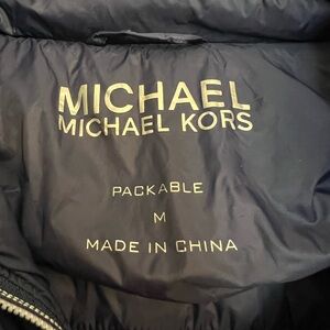 Michael Kors lightweight Puffer jacket size M packable down filled, logo sleeve, gold tone zipper detail, 2 front zip pockets, elastic back, detachable hood in like new condition see all photos for details! And ask any questions you may have