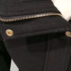 Michael Kors 56% wool 38% poly 4% nylon 2% acrylic, knee length coat w snaps, zip & tie closure. this coat has 2 side pockets and collar. fully lined with 100% poly. dry clean only. size XXS NWT. style 158512