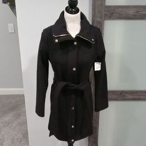 Michael Kors lined wool & poly knee length coat w snaps, zip & tie size XXS NWT