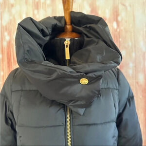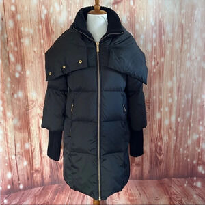 Michael Kors long black puffer jacket cowl neck long down filled XXS