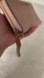 This wallet is like a pale, pale pink, but kind of like a flesh color. Hard to describe. The only callout can be seen in the last picture. There’s a little bit of a stain on the zipper in the corner.
