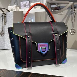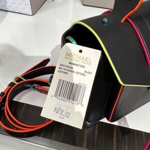 Michael Kors ★ manhattan MD Satchel Messenger Xbody Black Leather Hand bag purse