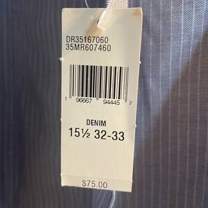 #MichaelKors #dressshirt. Michael Kors men’s dress shirt, blue denim color with white stripes size 15 1/2 32-33. New with tags