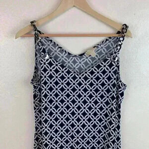 Michael Kors mini slip dress with chain strap and abstract print size M. Navy/white. Unlined, with side slits.