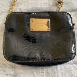 Michael Kors mini crossbody bag w/zipper closure black & gold 6”x4.5”