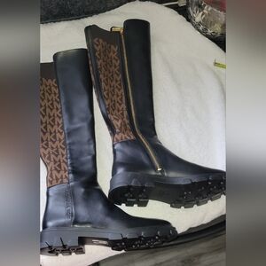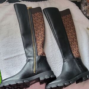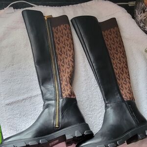 Michael Kors new Ridley riding boots blk logo jacquard knee boots sz 8.5 leather
