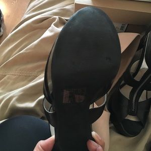 All black very comfortable open toe sandal. Worn but in good condition. No longer fit.