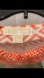 This is a Michael Kors orange and white geometric print sleeveless top with a cowl neck and embellished shoulder