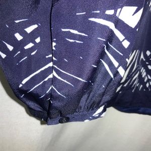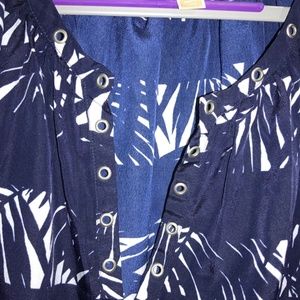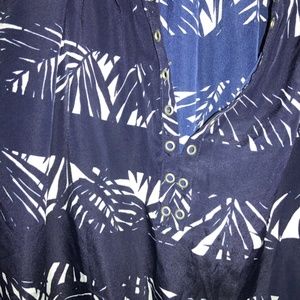 Michael Kors palm leaf blouse Sz XL long sleeve button cuff botanical
