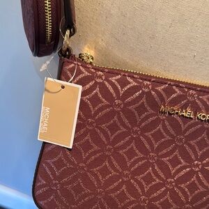 Elevate your style with this elegant pink metallic crossbody bag from Michael Kors. Perfect for any occasion, this bag combines functionality with a chic design.