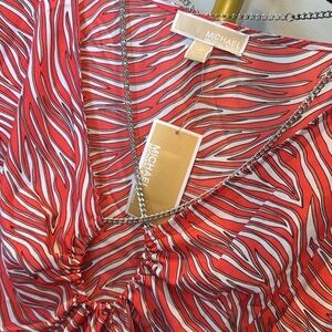 Michael Kors pink Zebra Print Chain trim blouse NWT 3X