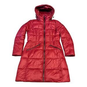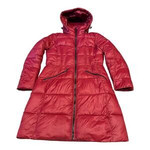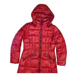 Michael Michael Kors puffer coat is so stylish with an exposed front zipper and a cozy stand collar accented by a removable hood.