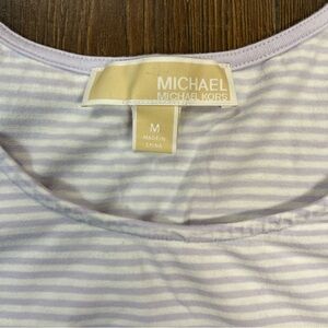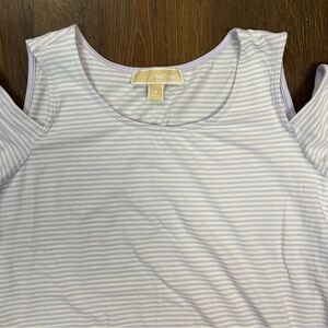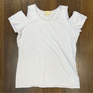 Michael Kors, purple striped cold shoulder tee SZ MED