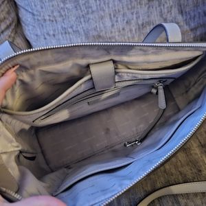 This is a mint condition light gray Michael kors bag. Has several compartments to store your things. Comes with a free travel perfume.