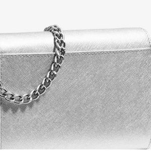 From the Michael Kors Jet Set Collection the Travel phone case is the very definition of smart style. Made from etallic leather with an adjustable strap. With its streamlined silhouette, it perfectly stores on-the-go essentials like your cell phone, cards and compact. NWT - (pics off lyst).