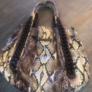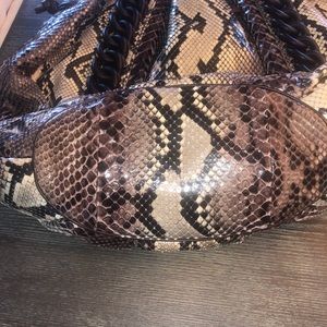 Magnificent genuine python skin shoulder bag. MINT and in pristine condition. Buttery soft python skin with drawstring closure at top. No marks scratches or signs of wear since it’s only been worn twice. A wonderful collection piece.