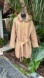 this pretty coat has a detachable hood. It has a beautiful quilting to it in a kind of a patchwork pattern with smaller quilting areas than larger quilting areas I love gold, tone zippers, and there’s plenty of them on this coat as well as snaps down the front so you’ve got a double closure system. The hood is detachable. This is a great trenchcoat in excellent condition. I’m an extra large, but I like things oversized. There is a logo on the upper sleeve. This is in like new condition.