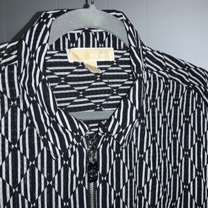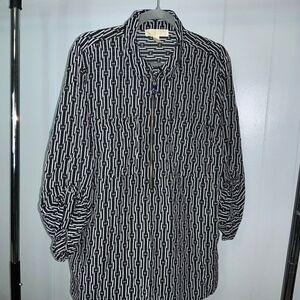 Michael Kors roll tab sleeve half zip tunic Sz XL geometric print hi low hem