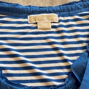 Michael Kors short sleeve scoop neck pullover casual top large blue white.