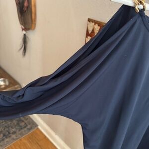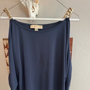 Fabulous Michael Kors cold shoulder mid-sleeve shirt embellished with purse quality gold chain straps.
