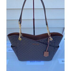 Michael Kors shoulder bag tote xchain bag jet set bag MK signature brown