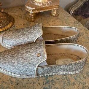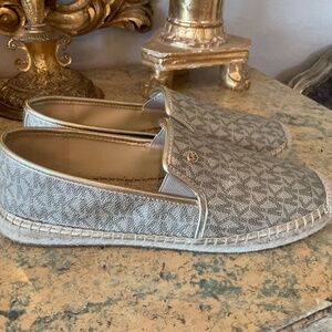 Michael Kors signature gold loafers espadrille style, 8.5m PVC upper. Never worn.like new
