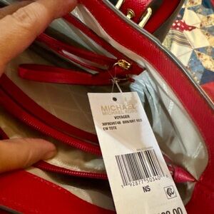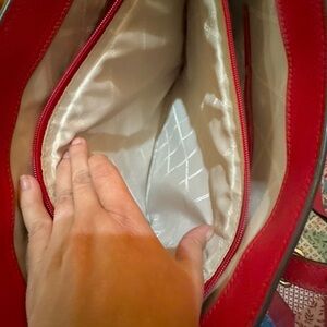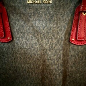 Chic Vibrant Red/Logo-print canvas tote with gold accents. Beautiful Tote. The Red just pops color. Perfect for everyday style.