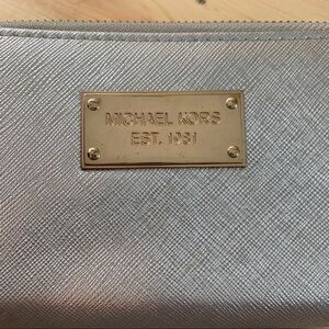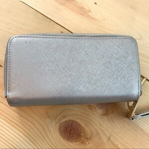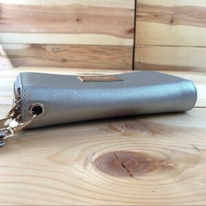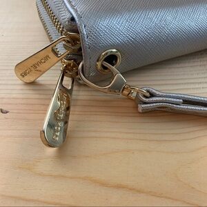 Michael Kors silver saffiano double zipper wallet wristlet