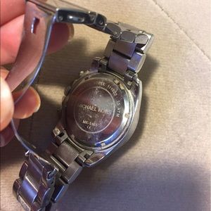 Beautiful pre-owned MK watch. 1 tiny pave diamond missing, hardly noticeable. Typical small scratches from wear. Needs a new battery. A few links have been removed but I will send, I still have them.