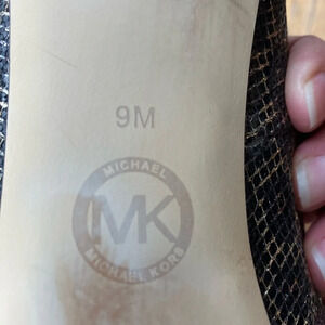 Michael Kors size 9 brown and metallic gold platform peep toe heel.