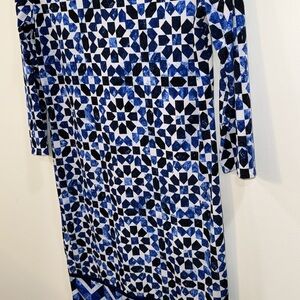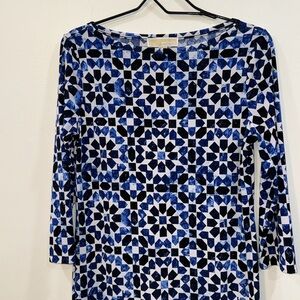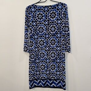 Michael Kors size Small blue patterned 3/4 sleeve dress 95% polyester 5%spandex