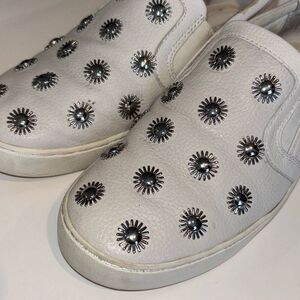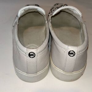 Michael Kors slip on Leo leather sneaker shoe white metallic stud Sz 6.5 EUC box