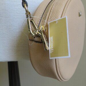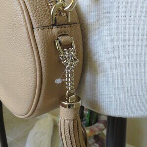 MK logo on the front , Beige leather . 7" x 7'" x 2 "