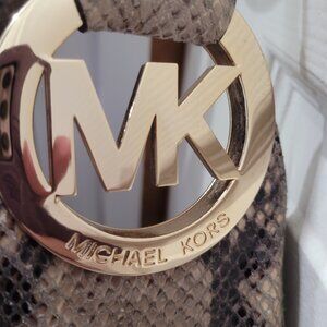 Vintage Michael Kors hobo shoulder bag. Beautiful large MK hardware. Very clean used bag. Soft supple leather in a natural snake print. Very roomy bag.