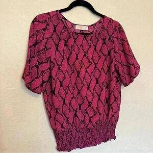 Michael Kors snake skin print blouse with smocked waistband in size small