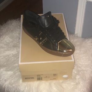 Black and gold with sneakers with star and stud detail. Bubble gum sole
