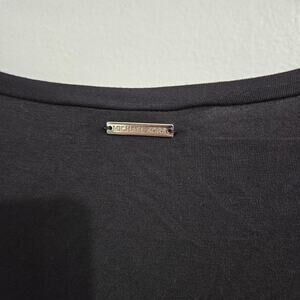 Michael Kors soft black and cheetah print 3/4 Length sleeves top. Size small. The black part feels like thin knit and the bottom feels like chiffon. Excellent condition!