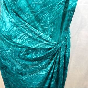 Michael Kors stunning teal blue waves print ruched twist dress size medium