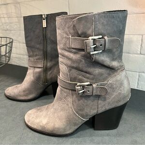 Michael Kors sz 9 Ashton gray leather block heel booties