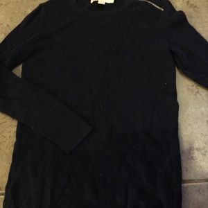 Classic black sweater with some flare and style. Michael Kors size Medium in excellent used condition!! No flaws at all! Zipper on left shoulder is functional and in my opinion, adds just the right amount of style and class. The sweater is ribbed and fitted but not too tight at all. The back has the signature Michael Kors gold toned plaque at top, as shown in pics. Likewise the zipper also says Michael Kors. This sweater feels soft and can tell it’s high quality and will last for some time and can be dressed up or down. Please use pics as part of description.