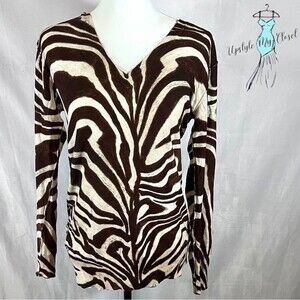 Michael Kors tan and brown marble print vneck light oversized knit top size XS